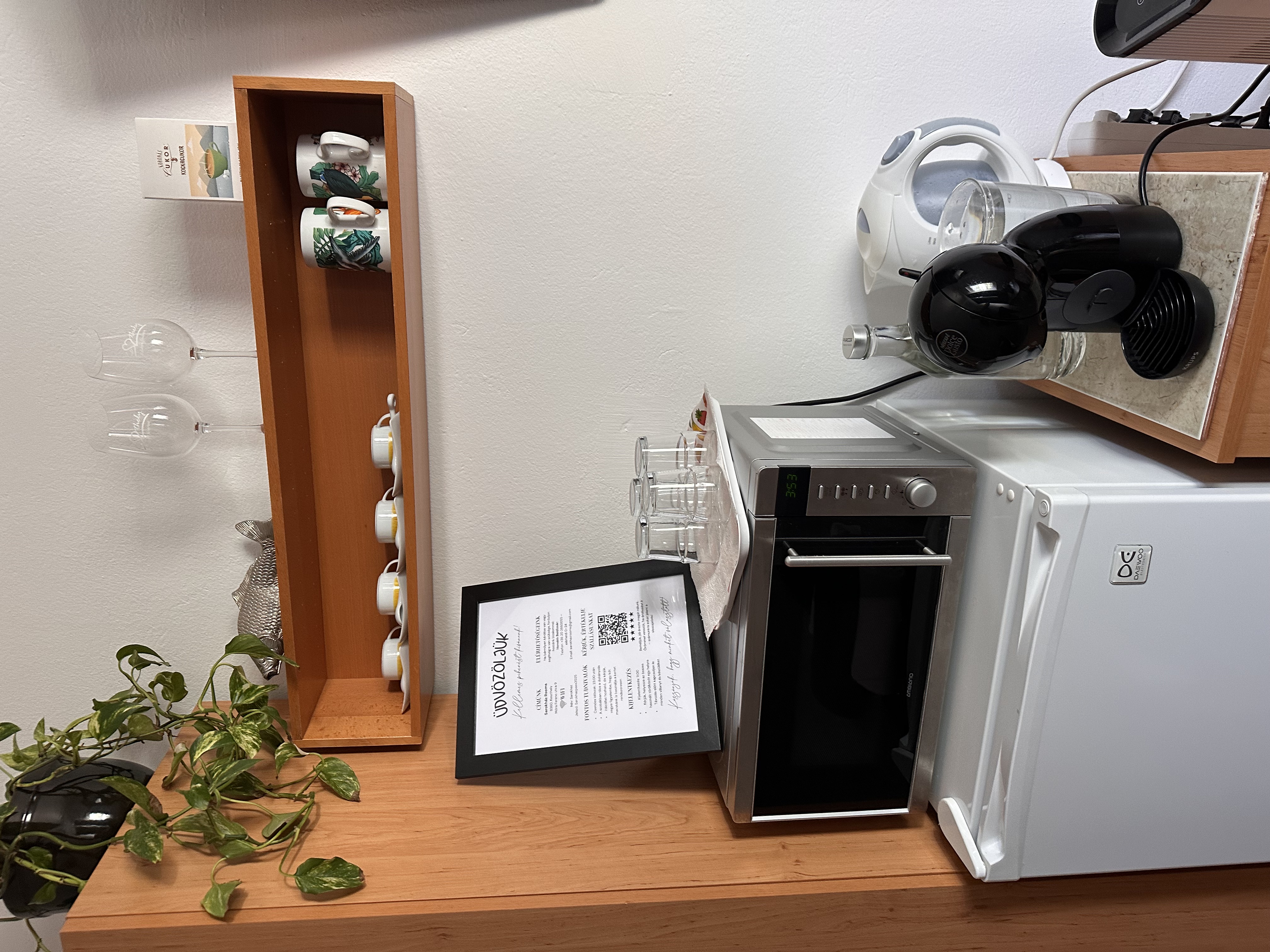 Minden vendégünk számára bekészítünk kávét, teát és palackozott vizet a szobába.